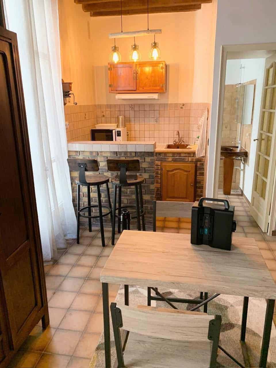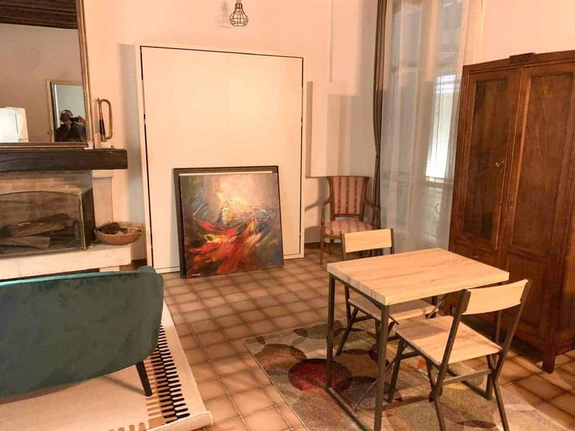 The building consists of two residential units: one is a studio measuring 28 square meters, while the other is a two-level apartment spanning 68 square meters. Both units feature original design elements complemented by recent renovations.