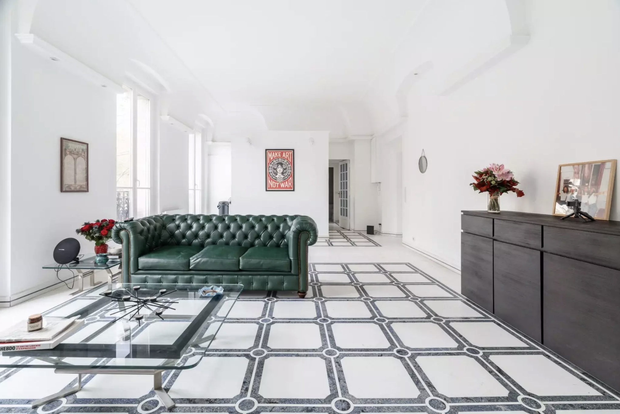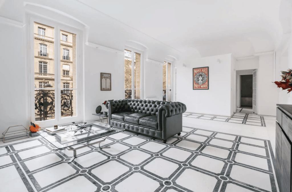 Located in a residence with 24/7 security, this 76m² apartment features impressive high ceilings and consists of an entrance hall, a living room, and two bedrooms, each with its own en-suite bathroom. Both the living room and the bedrooms open onto a continuous balcony overlooking the prestigious Avenue d’Iéna.