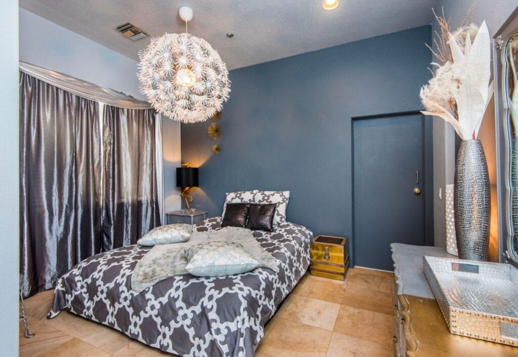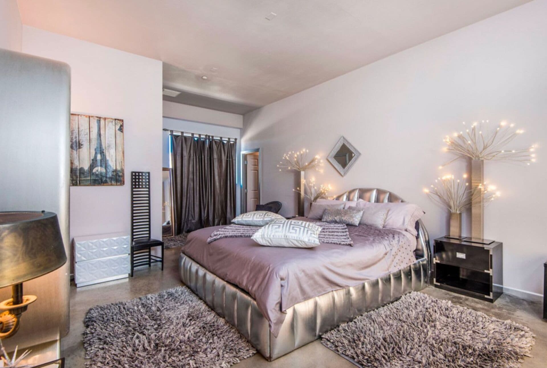 - “EIFFEL” Suite: Features a King size bed with a 70′ metallic leather frame.